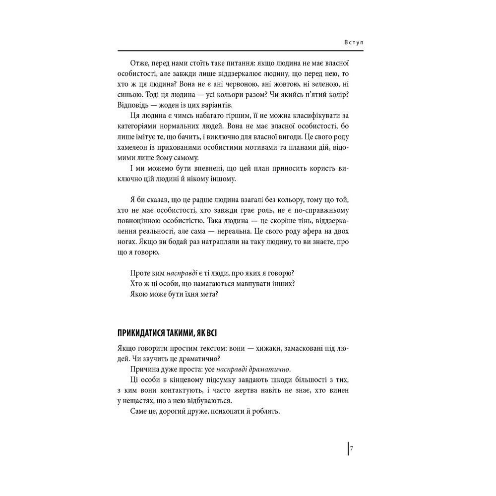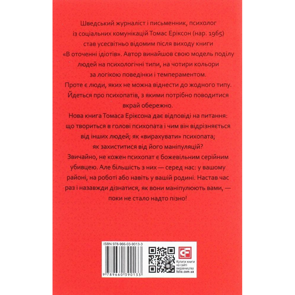 Проте є люди, яких не можна віднести до жодного типу. Йдеться про психопатів, з якими потрібно поводитися вкрай обережно — і якраз цієї теми торкається книга Еріксона «В оточенні психопатів, або Як уникнути маніпуляцій з боку інших».