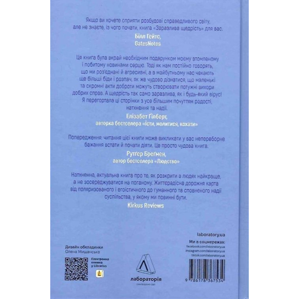 Кріс Андерсон у книзі «Заразлива щедрість. Ідея, яку варто поширювати» розповідає історії, що надихають, і пропонує інструкцію того, як почати робити щедрі вчинки: дарувати гроші, час, талант, зв'язки чи доброту — і завдяки інтернету надавати їм здатність до самовідтворення, що змінює світ.