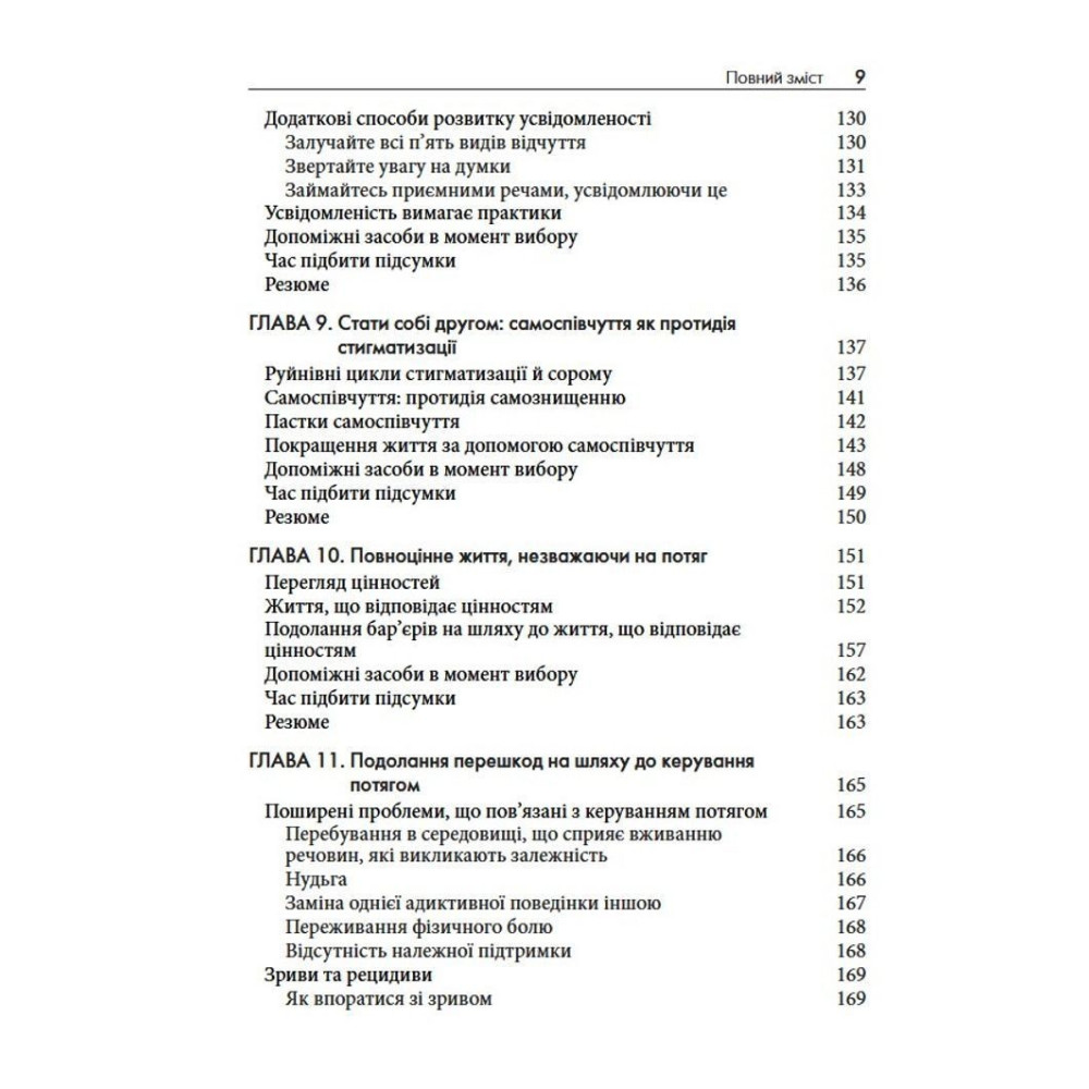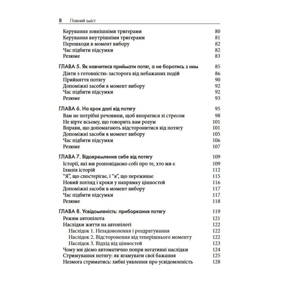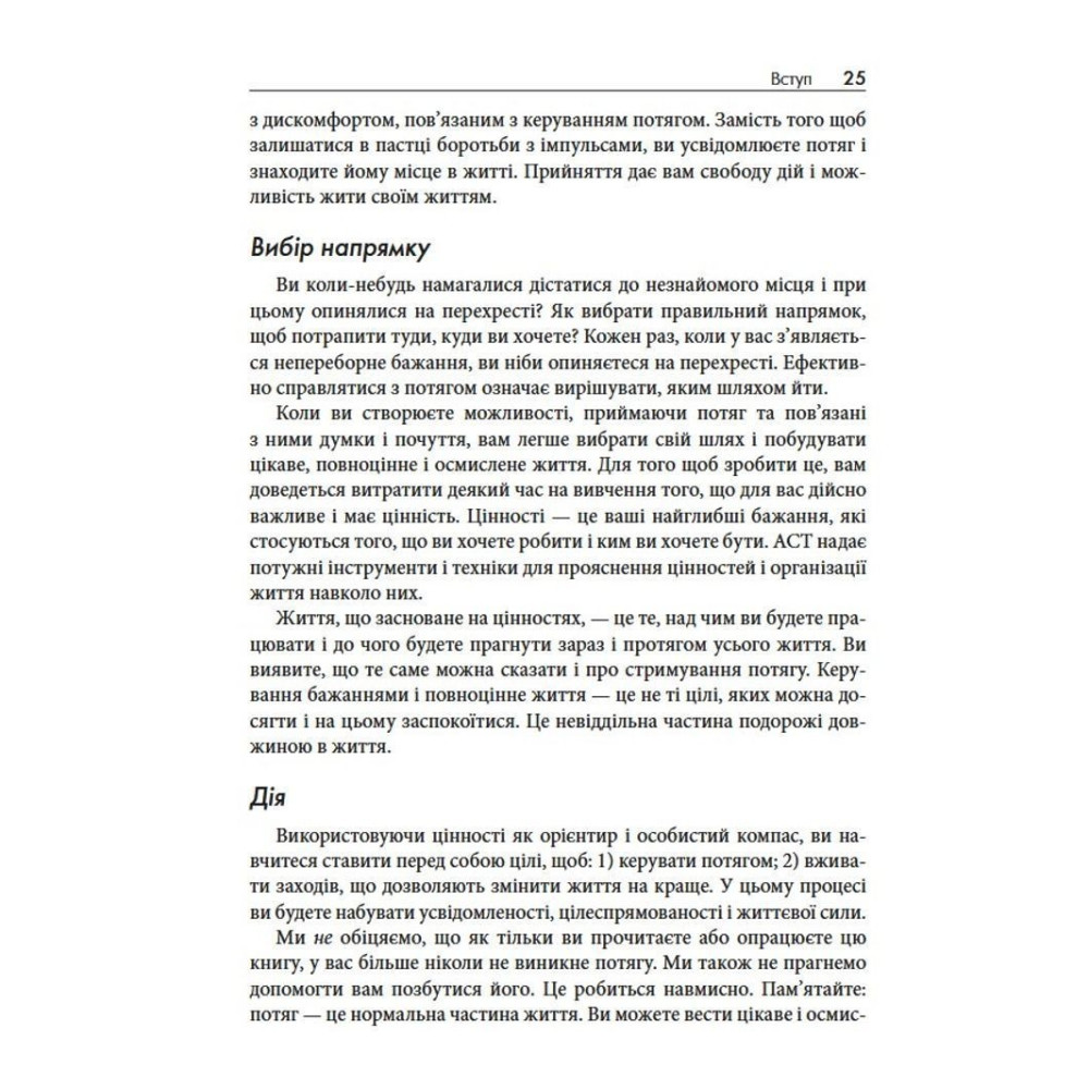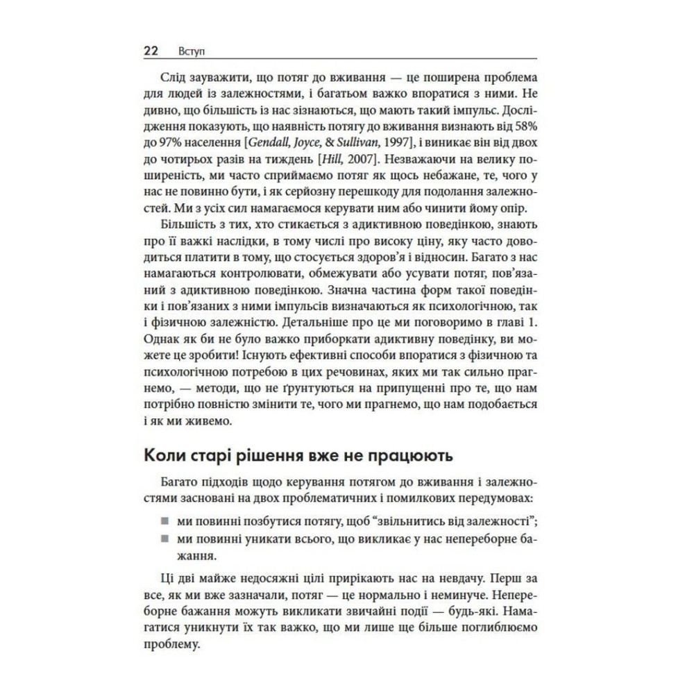 У книзі «Терапія прийняття та відповідальності у подоланні адиктивної поведінки» дві досвідчені клінічні психологині Марія Карекла та Меган М. Келлі пропонують науково обґрунтований підхід: терапію прийняття та відповідальності (ACT). Це не чергові поради про силу волі, а практичний посібник, завдяки якому ви дізнаєтеся, як розпізнавати тригери, зменшувати вплив згубних сценаріїв і рухатися до життя, яке відповідає справжнім цінностям.