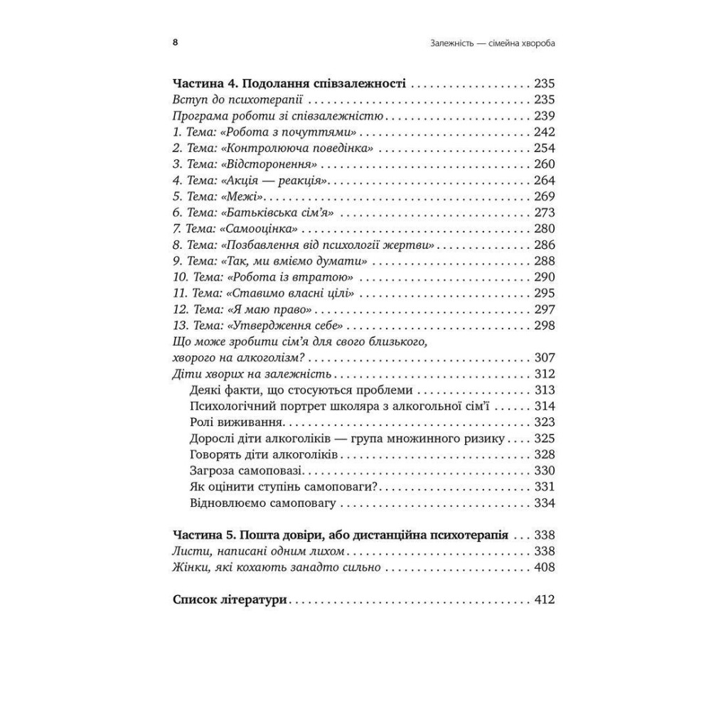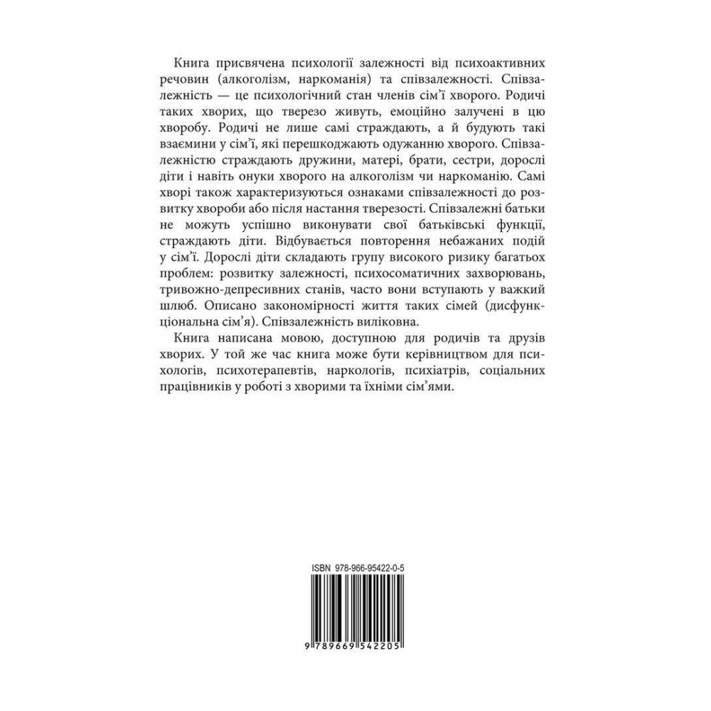 Співзалежність виліковна. Книга написана мовою, доступною для родичів та друзів хворих. У той же час вона може бути керівництвом для психологів, психотерапевтів, наркологів, психіатрів, соціальних працівників у роботі з хворими та їхніми сім’ями.