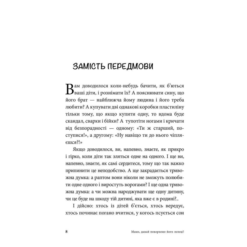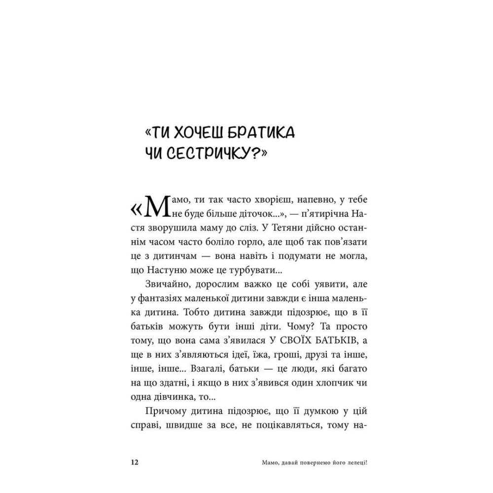 Книга «Мамо, давай повернемо його лелеці! Допомагаємо дитині подружитися з братиком чи сестричкою» від Анни Кравцової висвітлює проблему сімейного суперництва між братами й сестрами, пропонуючи вихід з тієї чи іншої ситуації, здебільшого конфліктної.