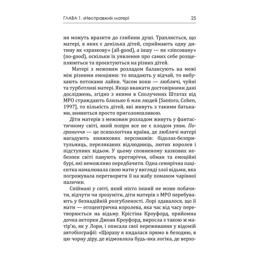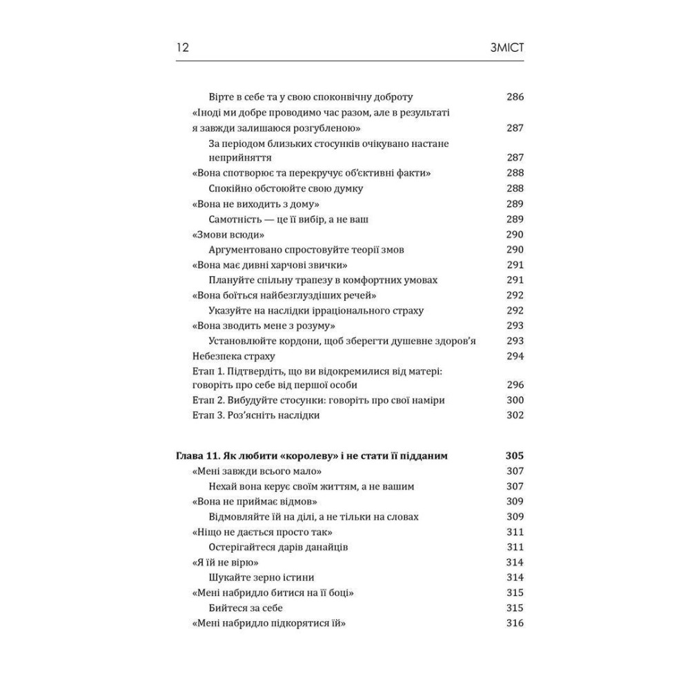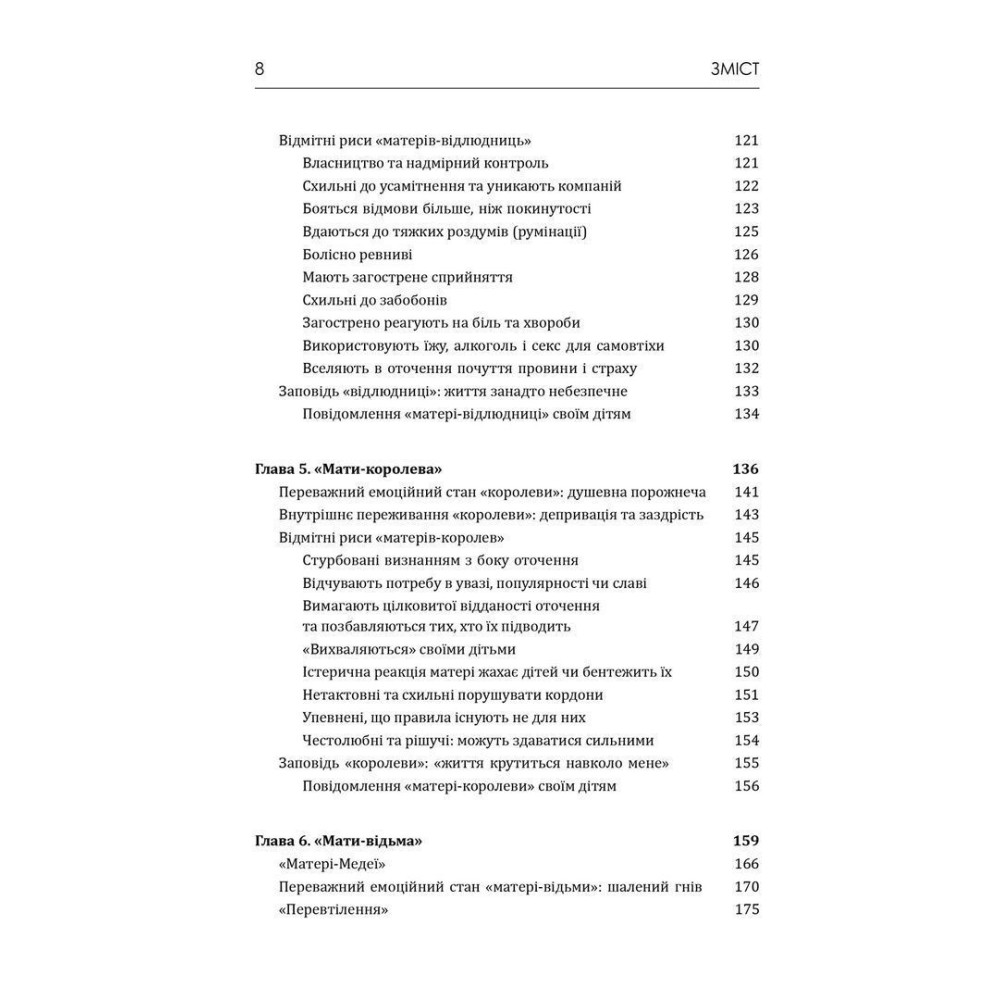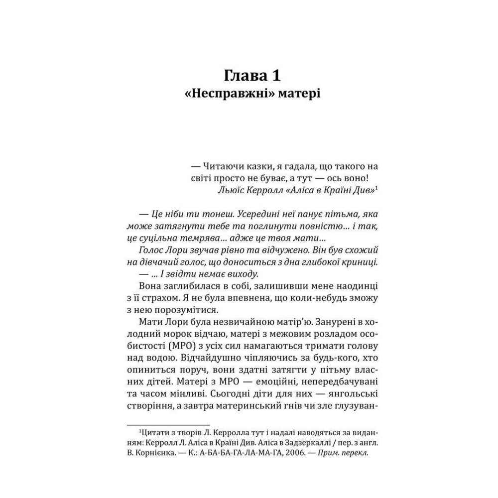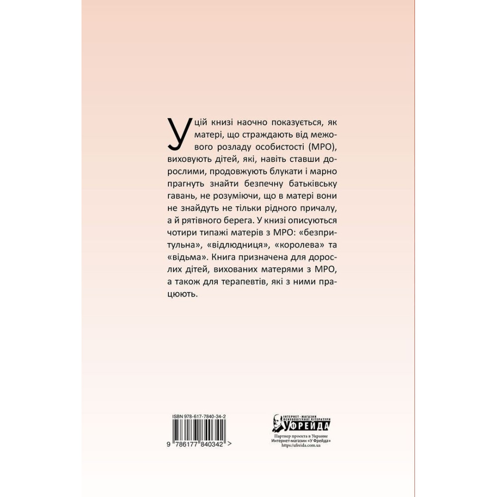 Книга описує чотири типи поведінки мам з межовим розладом психіки: «безпритульница», «відлюдниця», «королева», «відьма». Дізнайтеся, як протистояти мамі певного типу і перестати бути жертвою її травмованої особистості.