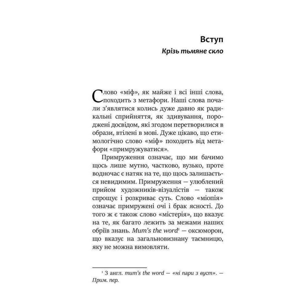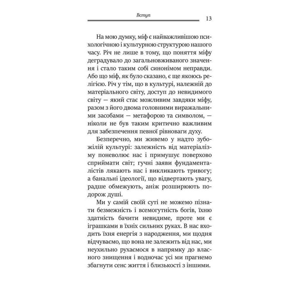 Історії, розказані таємничими старцями біля стародавніх вогнищ, давали і пояснення, і заспокоєння. Життя не надто змінилося; наша залежність від пояснень і заспокоєння все ще стоїть за нашими амбіціями та постійною тугою. Більшість базових припущень наших ранніх років були настільки глибоко засвоєні, що ми ніколи не озвучували їх, а отже, ніколи не мали можливості оцінити їхню актуальність для нас зараз. А якщо вони застарілі? Незрілі? Не по суті?