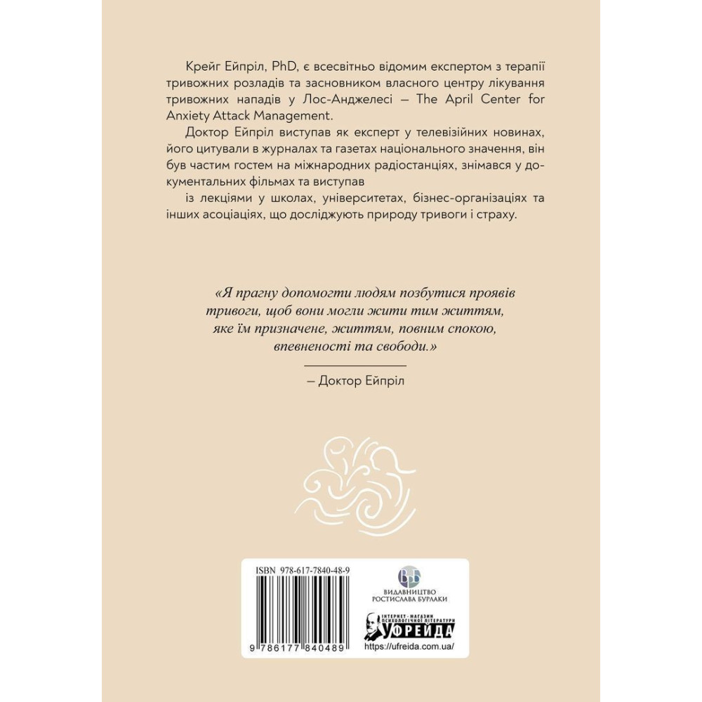 Крейг Ейпріл, PhD — всесвітньо відомий експерт з терапії тривожних розладів та засновник власного центру лікування тривожних нападів у Лос-Анджелесі, США — The April Center for Anxiety Attack Management. Крім того, він виступає як експерт у телевізійних новинах, є частим гостем на міжнародних радіостанціях, а також знімався у документальних фільмах та виступав із лекціями у школах, університетах, бізнес-організаціях та інших асоціаціях, що досліджують природу тривоги і страху; його навіть цитували в журналах та газетах національного значення.