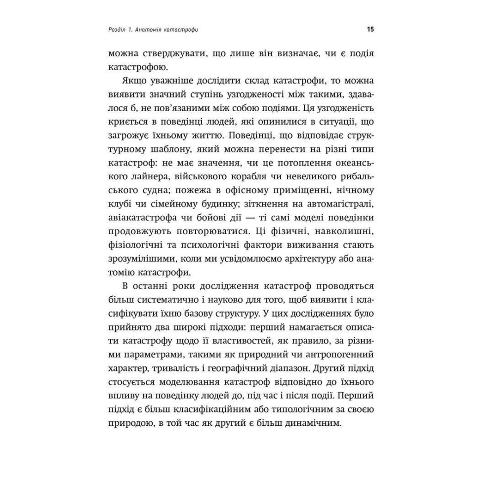 При написанні цієї книги, задуманої як посібник з виживання, були використані матеріали з багатьох різноманітних джерел: з власного досвіду автора, отриманого у ворожому середовищі, включно з пустелею, Арктикою, Полярною зоною, а також понад і під хвилями, на великій висоті, у печерах і військовому середовищі, під час низки офіційних курсівз виживання як для військових, так і цивільних; з його власних польових і лабораторнихдосліджень; з робіт інших наукових дослідників, авторів і журналістів; від персоналу аварійно-рятувальних служб, інженерів-конструкторів, працівників сфери психічного здоров’я, поліцейських і військовослужбовців та насамперед з особистих розповідей тих, хто вижив — обох статей, різного віку і різних національностей, які протягом багатьох років дозволяли автору опитувати їх, офіційно і неформально, з метою кращого розуміння психології виживання.