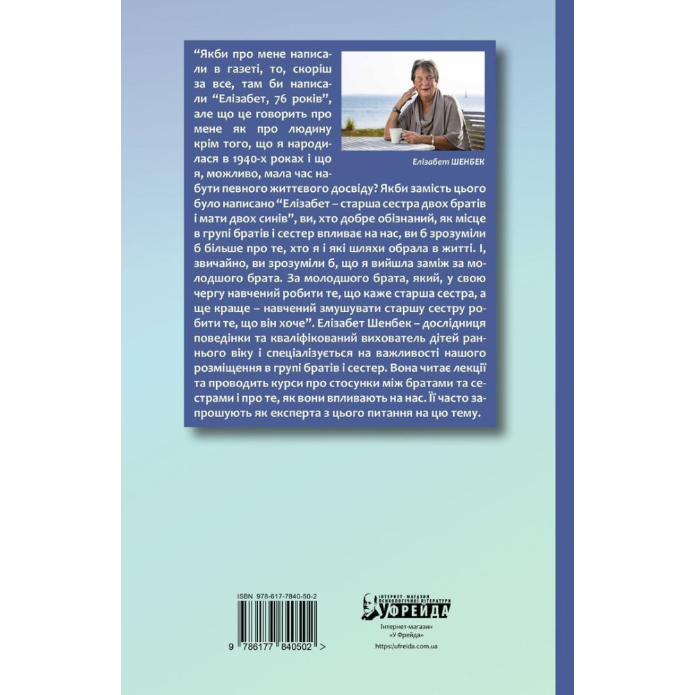 Книга від Елізабет Шенбек «Старший, середній, молодший. Як порядок народження впливає на формування особистості дитини» пропонує опис типів сестер та братів, на які умовно можна поділити дітей за порядком їх народження, що так чи інакше впливає на формування особистості у майбутньому.