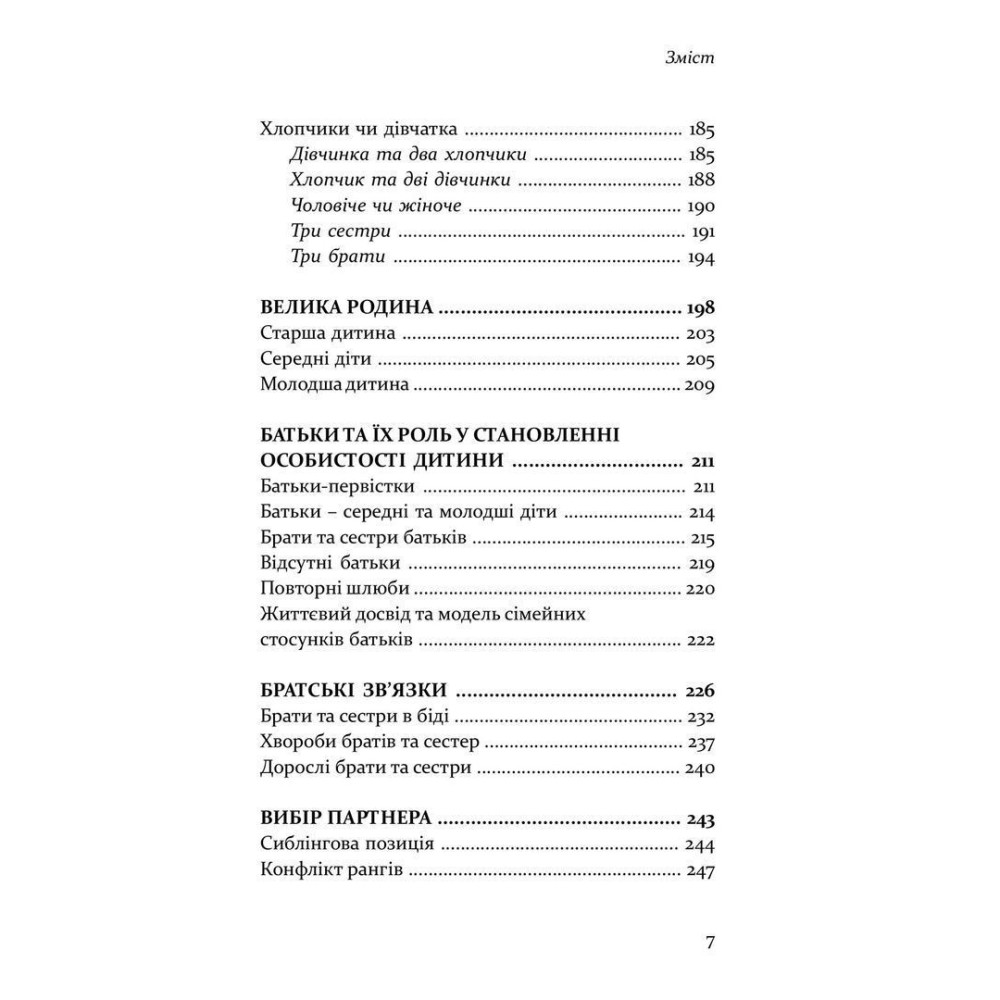 Прийнято вважати, що старші діти повинні опікуватися молодшими, а молодші — допомагати старшим. А єдина дитина в сім’ї, як багато хто впевнений, лінива та примхлива. Звідки беруться ці уявлення та чи мають наукову основу? Авторка книги, шведська психологиня, багато років присвятила вивченню психології дітей, які живуть у багатодітних сім’ях, і саме завдяки такому досвіду має певні відповіді на такі й інші поширені питання.